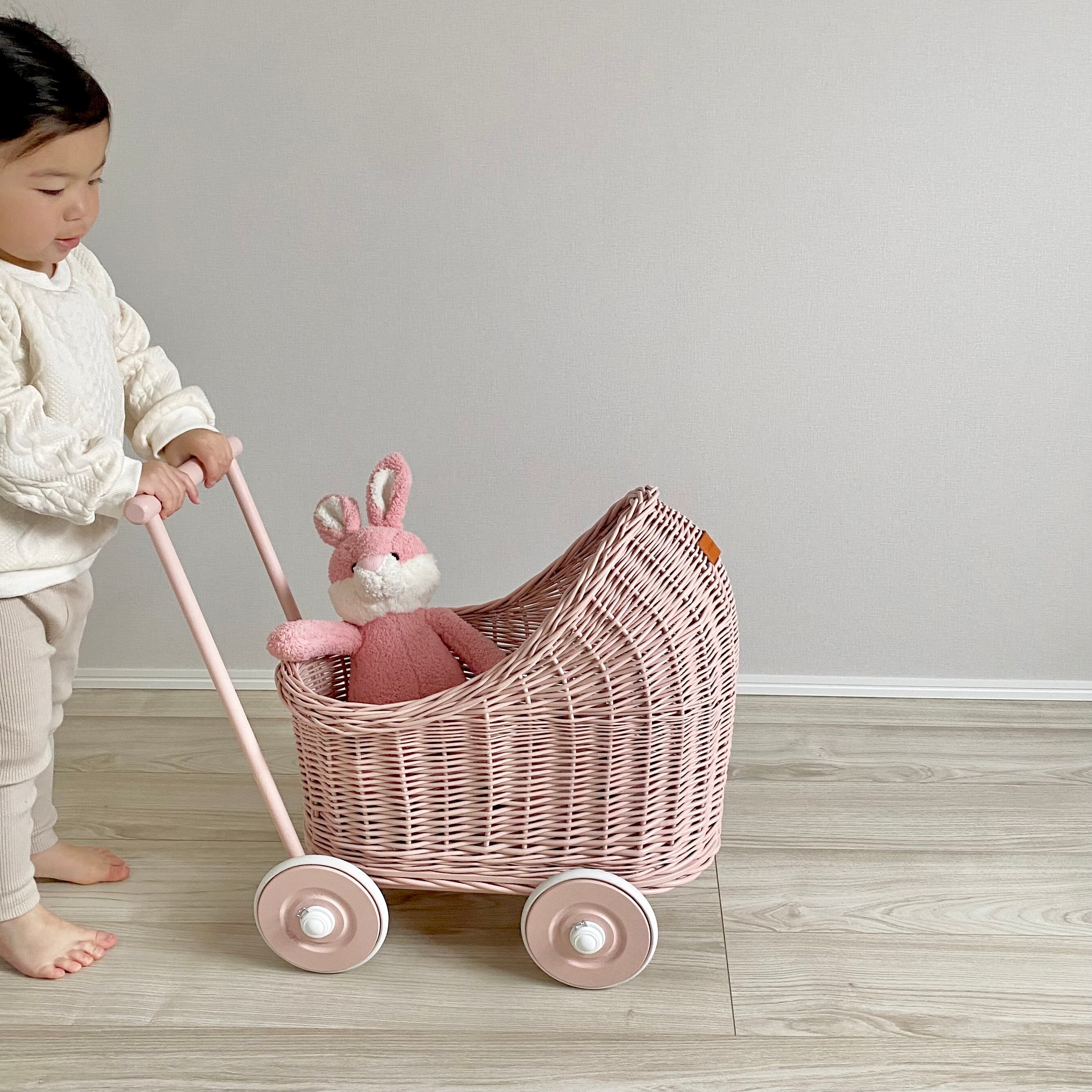 【受注品】ラタン乳母車(低いタイプ/Pink)