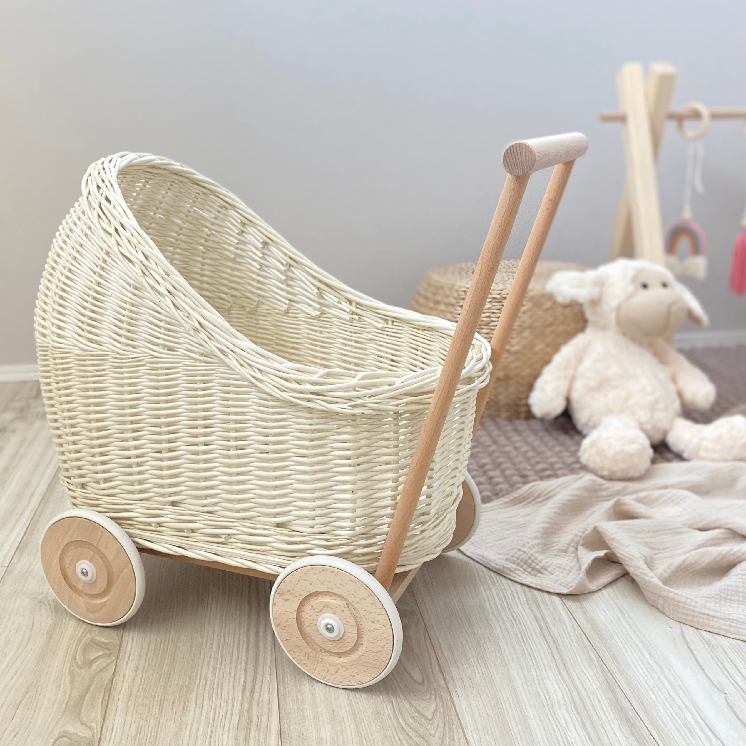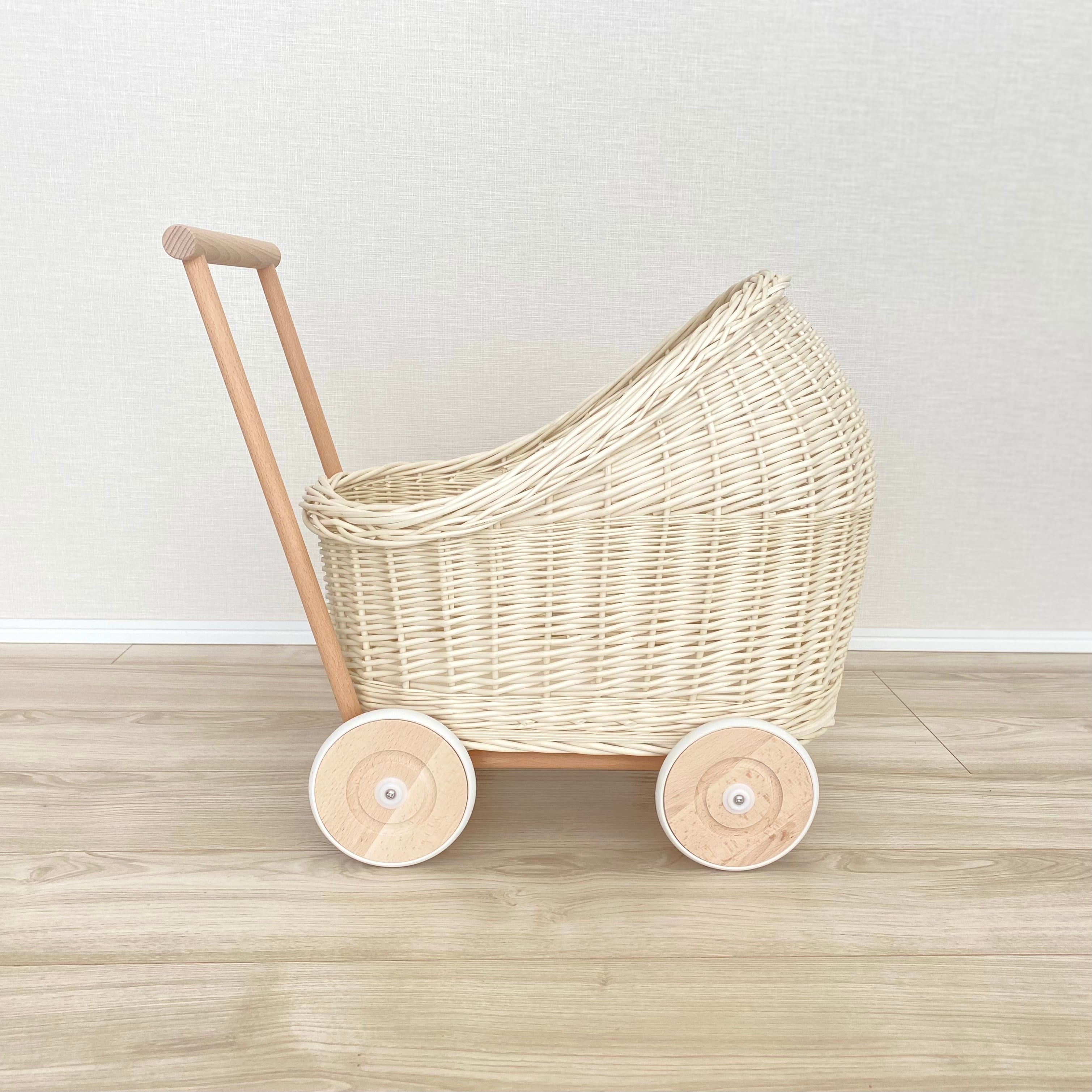 【即納】ラタン乳母車(低いタイプ/アイボリー)